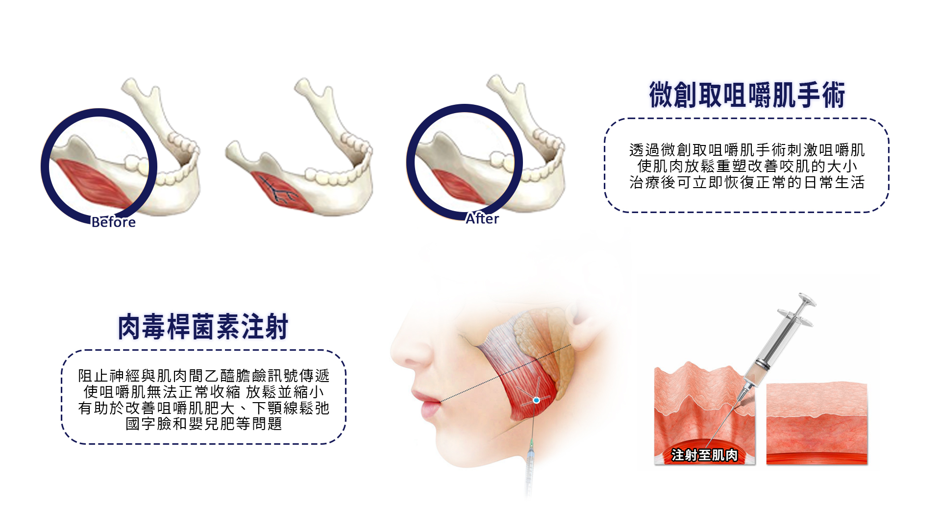 改善咀嚼肌 肉毒桿菌V.S.微創取咀嚼肌手術