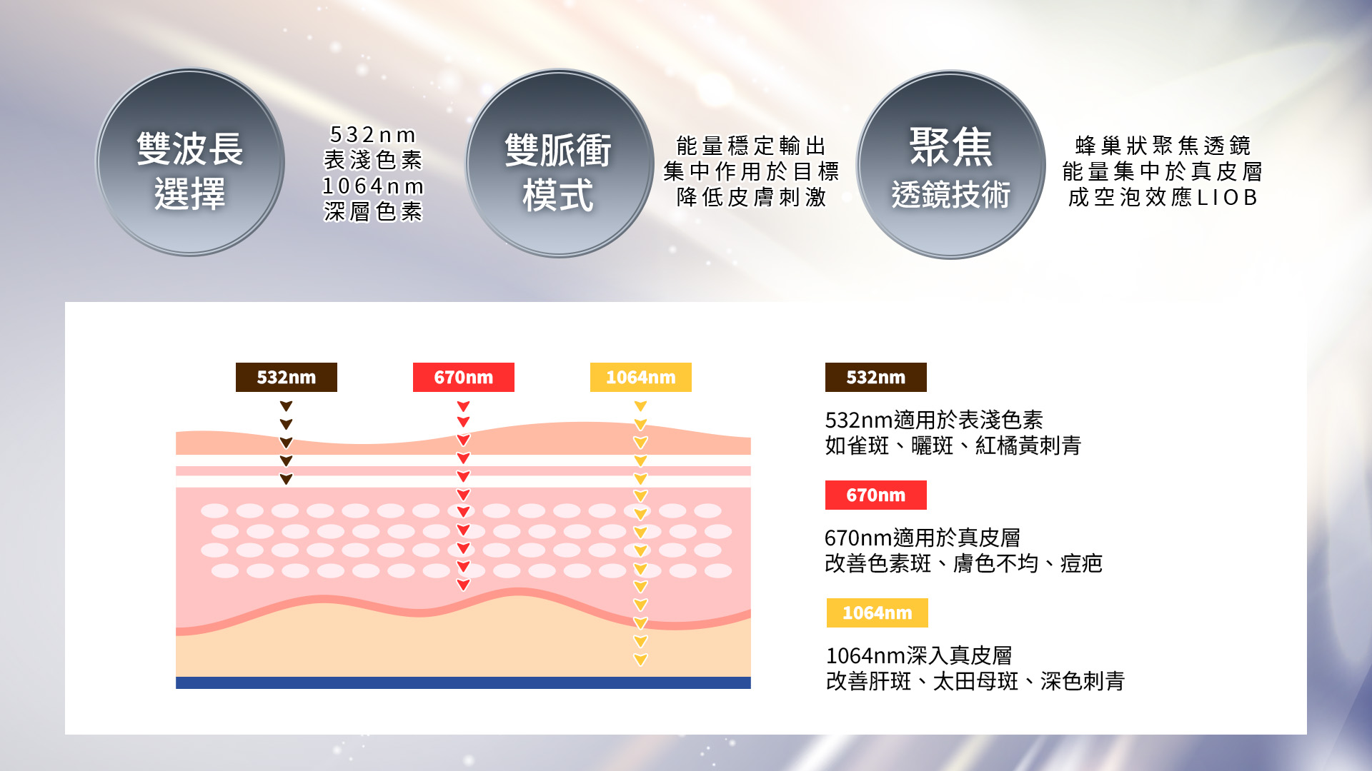 治療原理:雙波長 x 雙脈衝,針對性擊碎色素