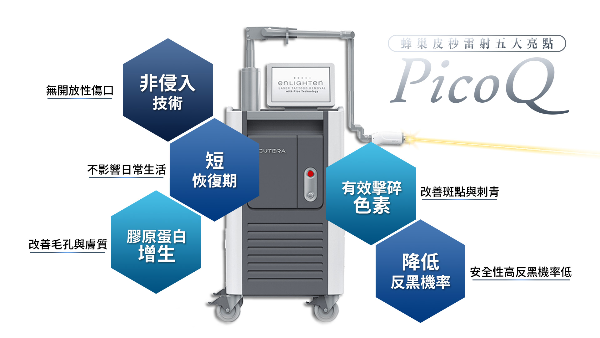 Pico Q蜂巢皮秒雷射的五大亮點總結: