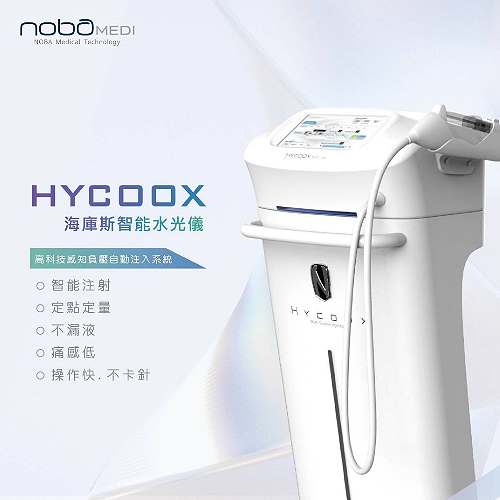 來自韓國的水光槍(HYCOOX海庫斯智能水光儀),是一種電動玻尿酸注射幫浦。儀器配有無菌多針座穿刺針和注射器,用於將玻尿酸注射至臉部皮膚中,使用特定注射中層皮下注射之玻尿酸,通過安裝