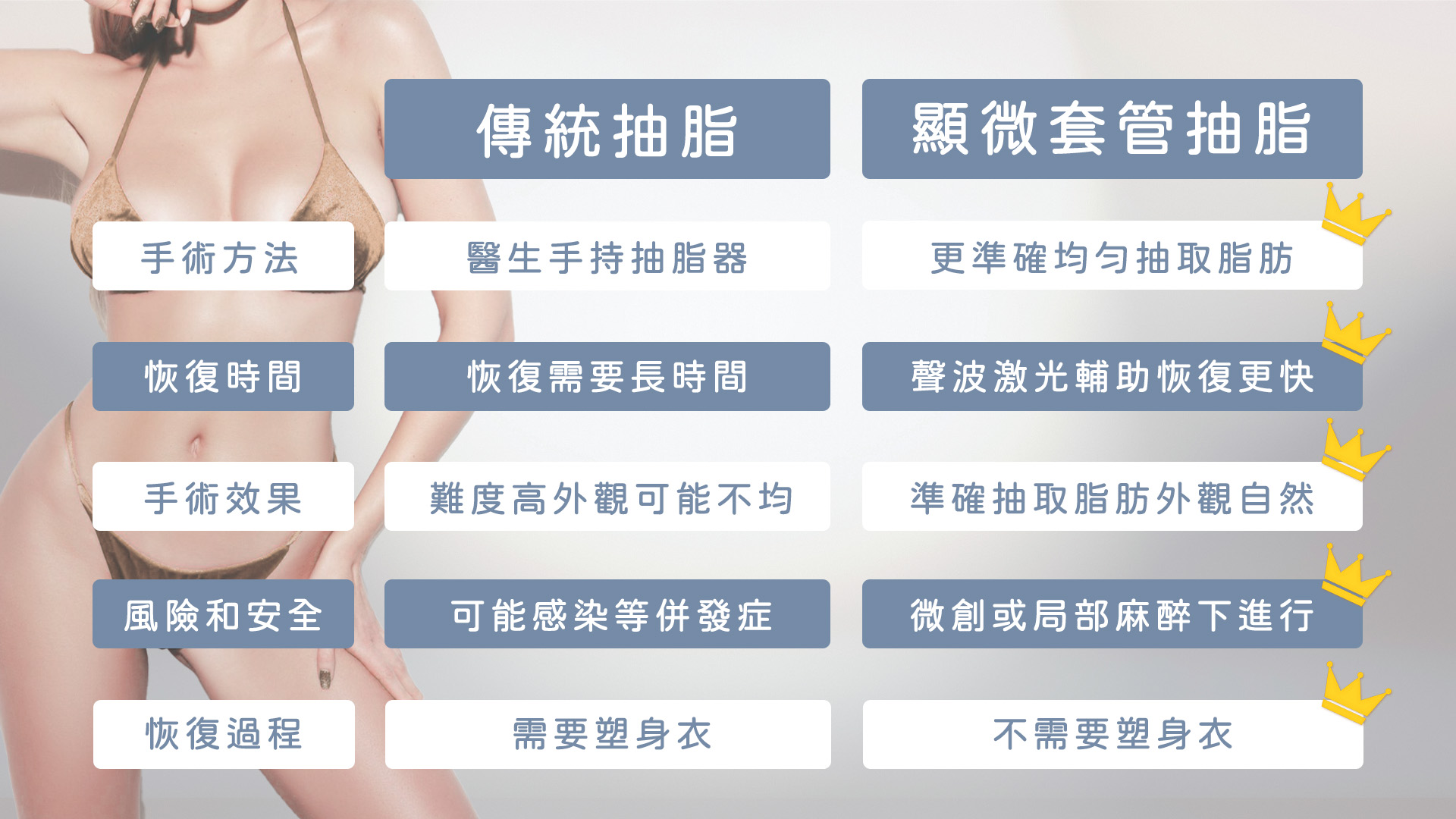傳統與顯微套管抽脂手術方法比較