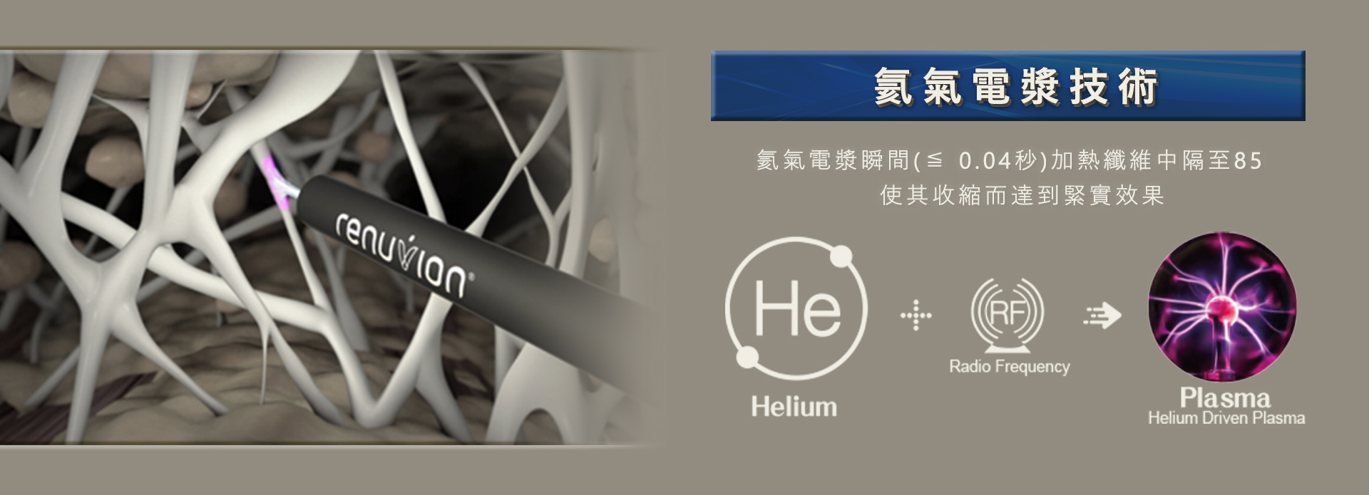 超能電漿是一台利用電漿來緊縮皮膚的儀器,其原理是運用氦氣、電波來激發成電漿態,利用獨特的電漿急速升溫,於一秒內將溫度提升至85℃(能刺激彈性纖維的有效溫度為65~85℃),藉此來刺激皮膚彈性纖維產生約60%的收縮,讓淺中深層的纖維中隔層達到緊縮的效果,同時利用氦氣冷卻系統急速降溫,高溫僅會在表面皮膚組織短暫停留,以讓療程期間時表層的肌膚溫度維持在41℃以下,保護表面皮膚安全避免燒燙傷情形發生。
