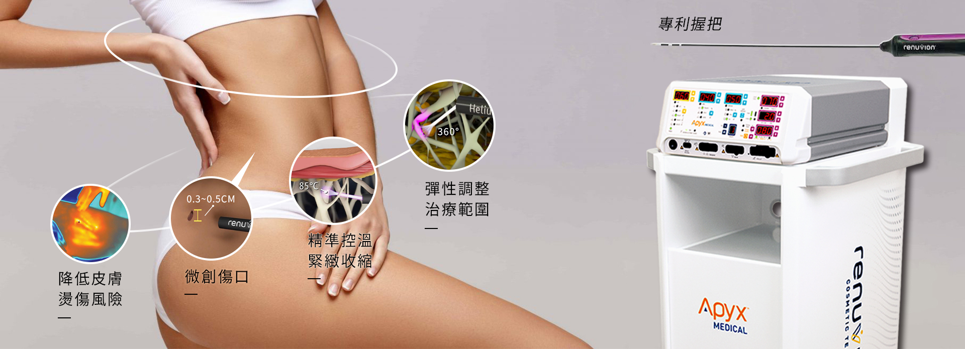 在過去的美容醫學外科技術,會建議做拉皮手術,顧名思義就是將多餘鬆弛的皮膚或有肥胖紋妊娠紋的皮膚直接剪掉、再縫合縫緊,並細心照護術後疤痕,即有機會可以解決擾人的皮膚鬆弛問題。但並不是人人都可以接受術後冗長明顯的疤痕,那超能電漿(艾皮克斯電燒系統-Apyx Medical"Rrnuvion System Generator)或許是您一個不錯的選擇。