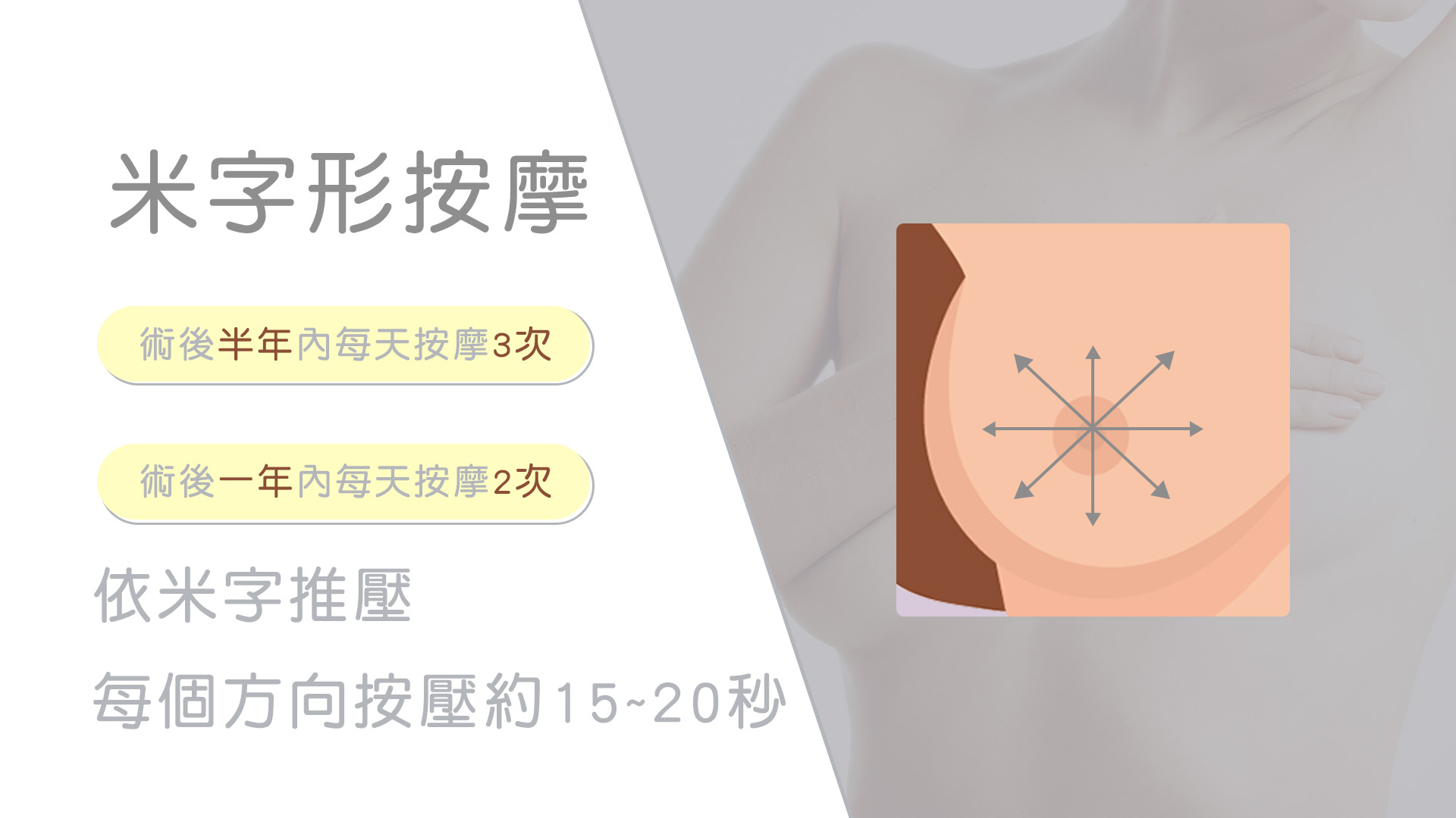 隆乳手術後48小時內切勿按摩、每次按摩力道勿過度用力、每次按摩時間不宜過長。