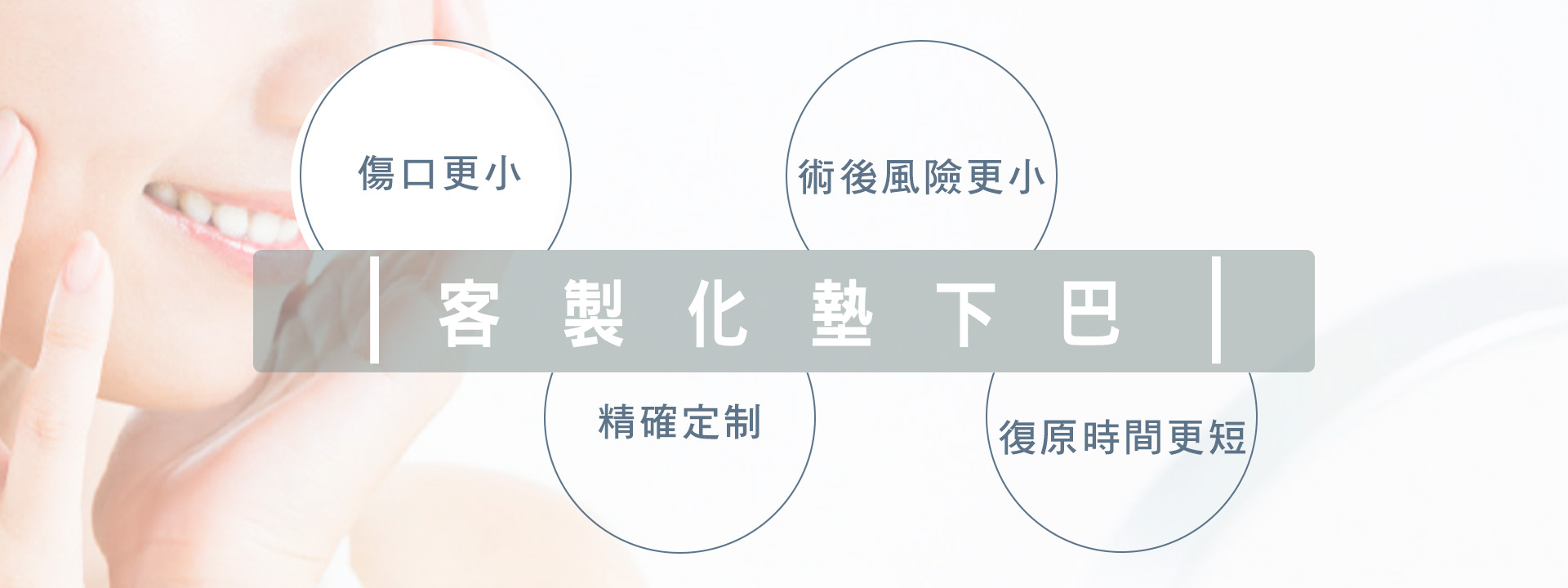 將最新的3D列印技術與醫學美容結合,為每個患者量身打造專屬的下巴客製手術,此手術方式將不會有如以往下巴整形手術過後,臉型不如預期或者不夠精緻的狀況發生,甚至在術後恢復的速度上會比起之前更快,且因客製的關係術後的成效極好,可以說是將患者的需求完美的在臉型上呈現出來。