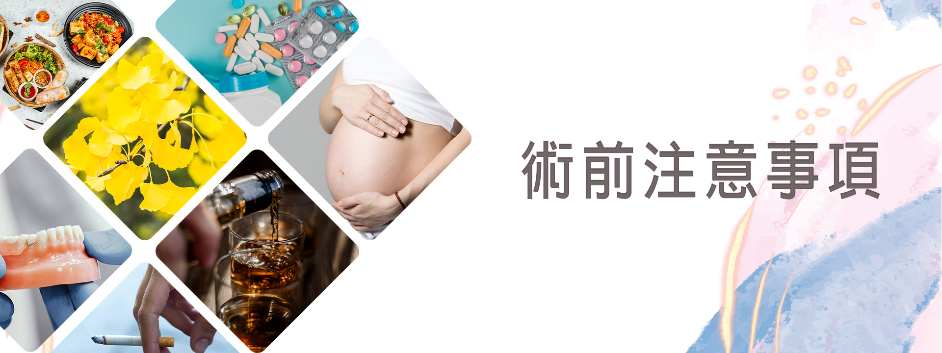 ● 手術前需禁菸禁酒,以避免引響血管收縮、傷口癒合。
