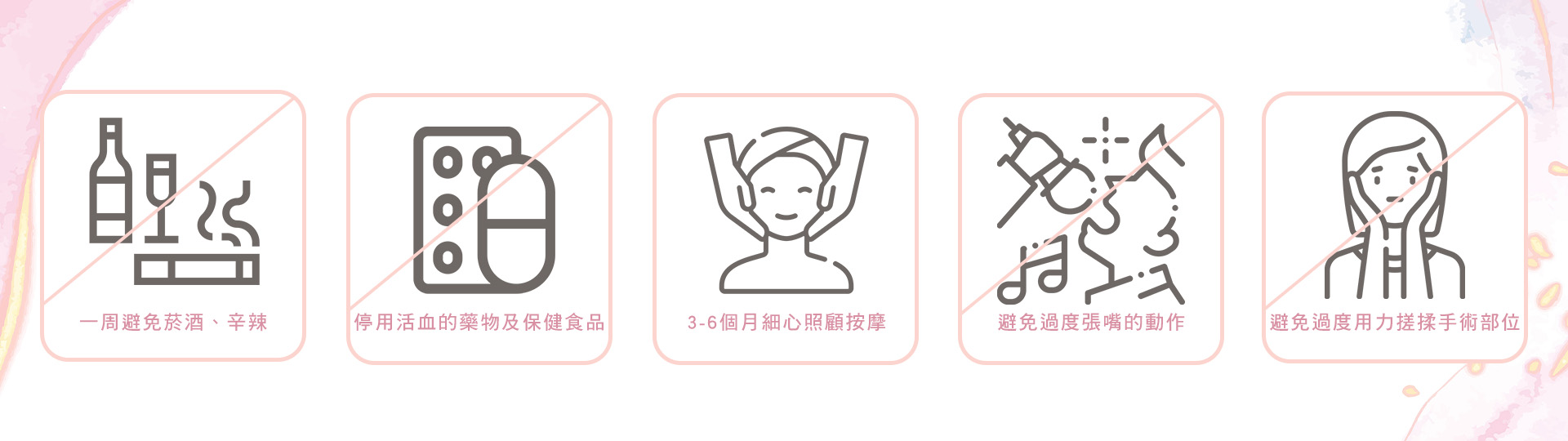 ● 術後初期盡量避免唱歌、大笑等過度張嘴動作。