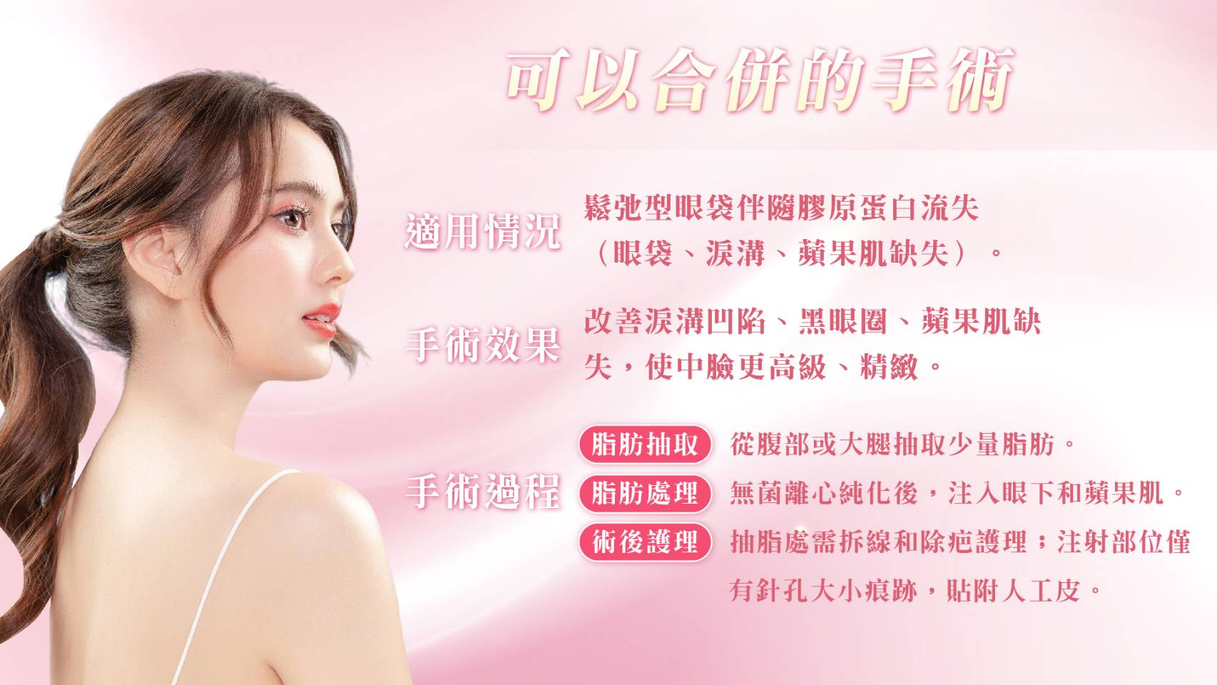 13.若有合併補脂肪,須避免壓迫臉部,以維持脂肪正常生長存留。Q.眼袋手術的修復期要多久?