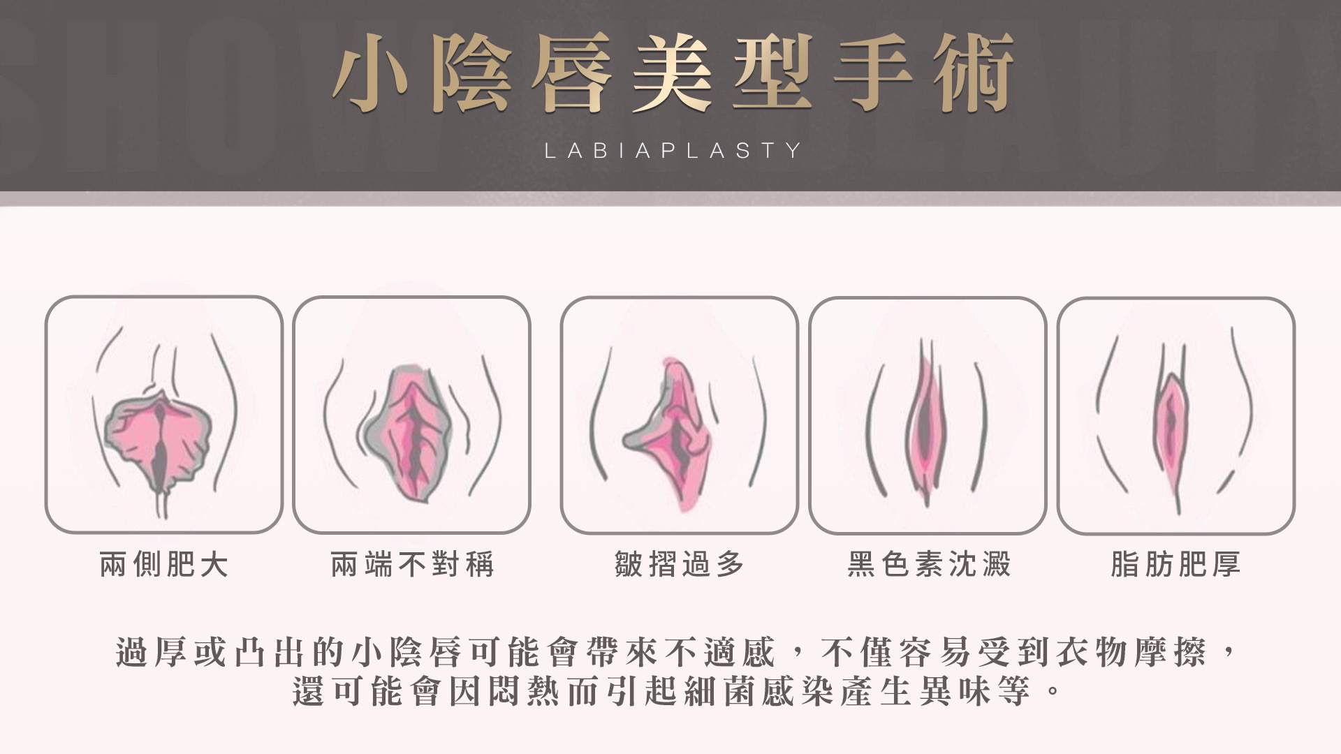 細緻嫩紅的小陰唇宛如含苞待放的玫瑰花瓣,是所有女性所嚮往的美,過厚或凸出的小陰唇可能會帶來不適感,不僅容易受到衣物摩擦,還可能會因悶熱而引起細菌感染產生異味,在性交時,過長的小陰唇也可能造成不適,甚至引起疼痛。
