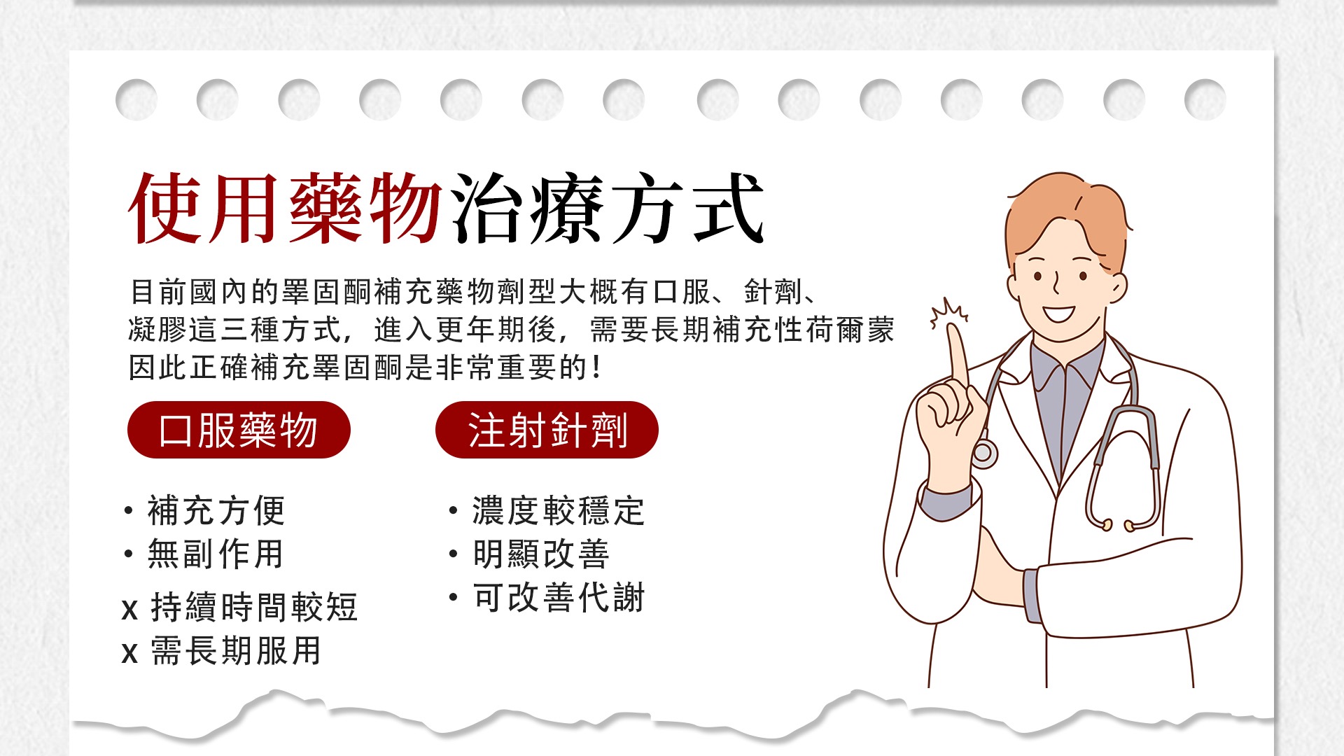 當男性體內睪固酮水平過低時,醫生可能會考慮睪固酮補充療法,透過口服、注射、凝膠或貼片等方式補充睪固酮,以幫助調節激素平衡。