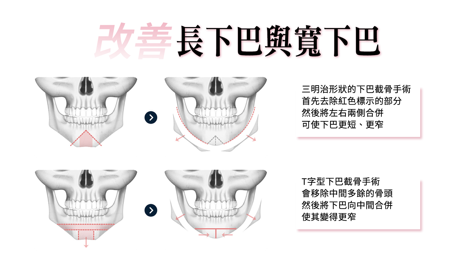 針對不同的下巴形狀,可以用不同的截骨方式處理