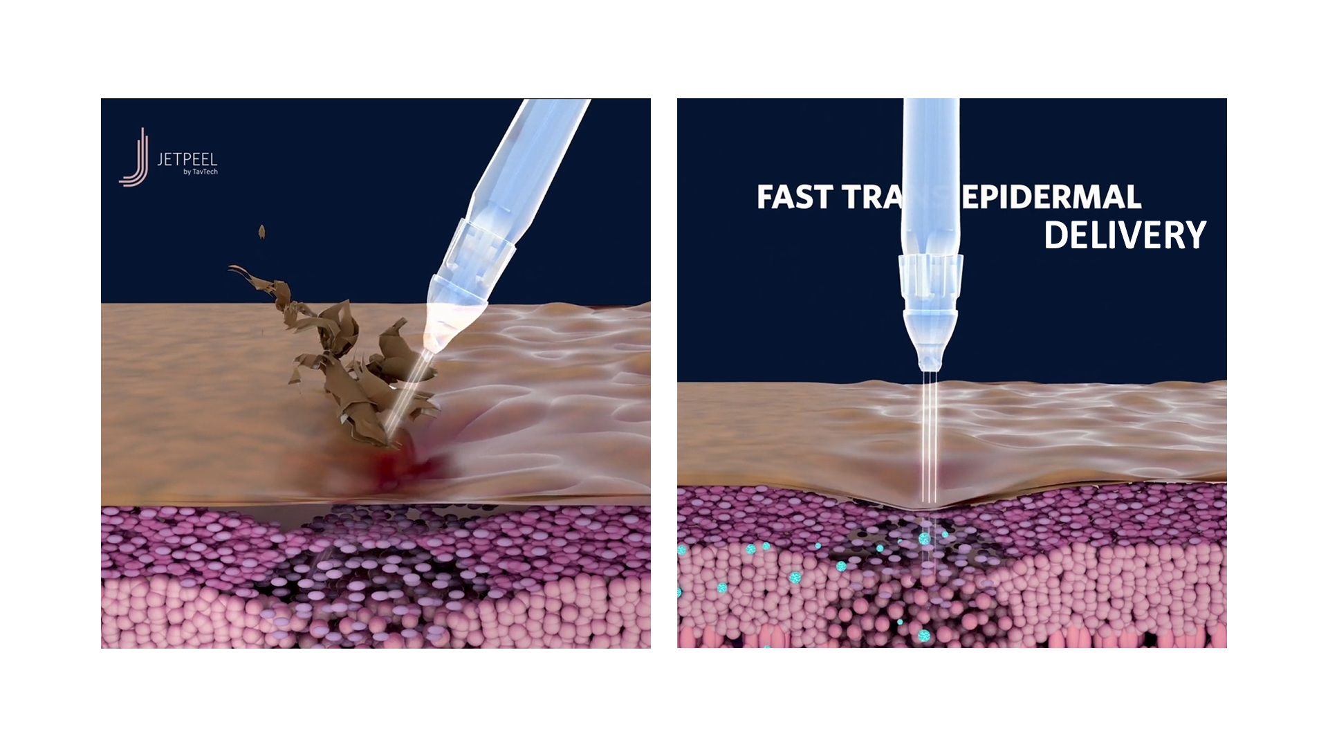 潔比爾療程的關鍵在於其專利的噴射技術。這項技術將精華液轉化為微滴狀,這些微滴比頭髮還要細小,能夠快速且深入地穿透肌膚表層,直接到達真皮層,從而達到深層保濕和肌膚修復的效果。潔比爾的噴射速度高達每秒220公尺,這樣的速度能夠有效促進精華液的吸收,使其迅速作用於皮膚,改善膚質、提升水潤感。