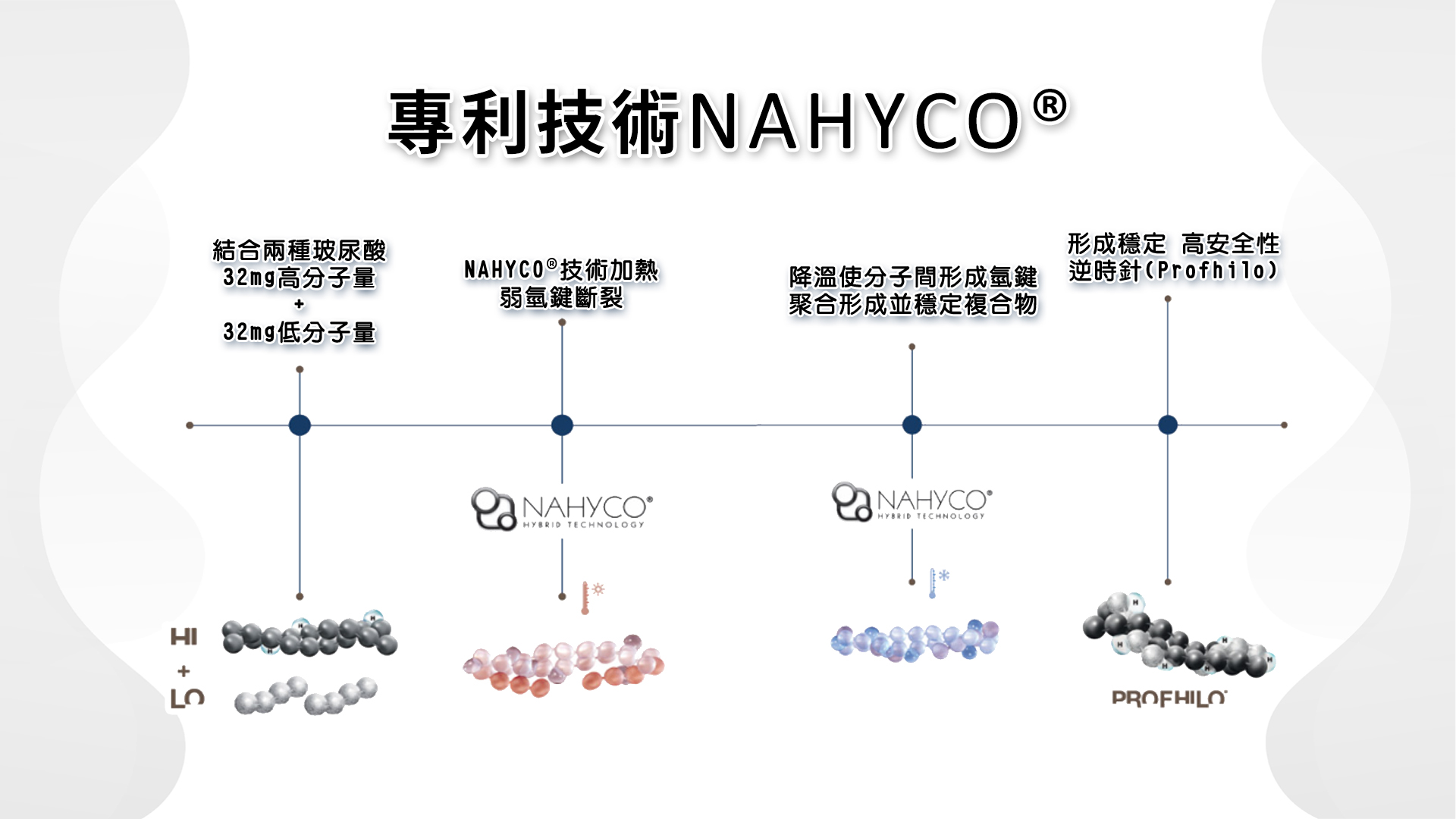 PROFHILO 是由瑞士知名製藥廠 IBSA 所研發的高濃度、穩定型玻尿酸製劑,結合低分子與高分子玻尿酸,透過一種名為 NAHYCO® 的專利技術,製成一種具高穩定性且高流動性的玻尿酸複合體。它的重點並不在於「填補」或「增加體積」,而是透過「生物重塑(Bio-remodeling)」機制,啟動肌膚自身的修復力,進而改善皮膚乾燥、細紋、彈性流失等初老現象。